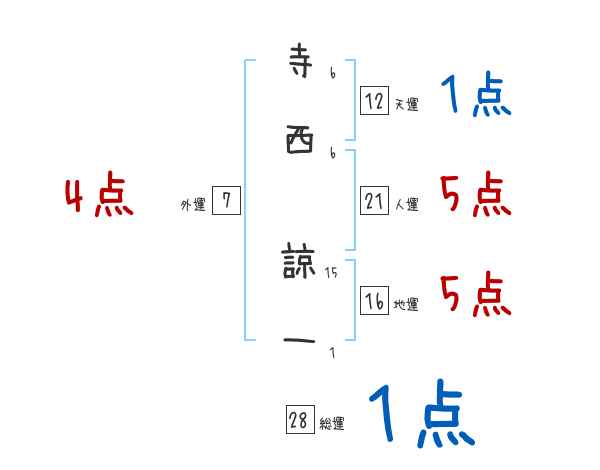 寺西諒一さんの画数の鑑定結果