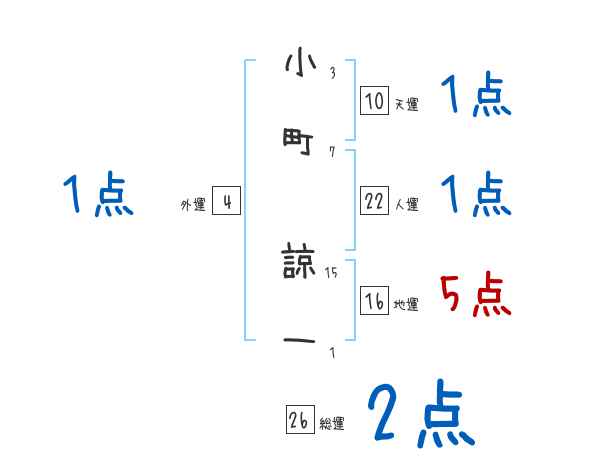 小町諒一さんの画数の鑑定結果