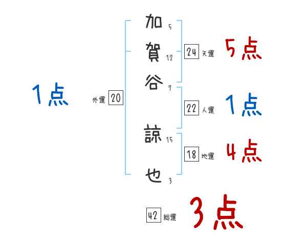 加賀谷諒也さんの画数の鑑定結果