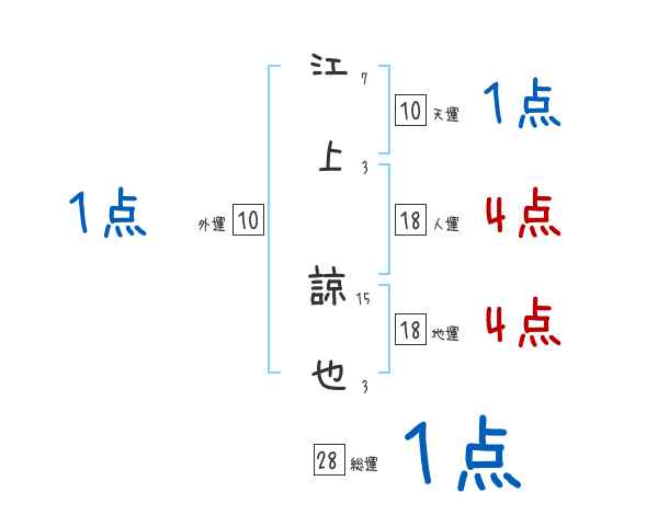 江上諒也さんの画数の鑑定結果