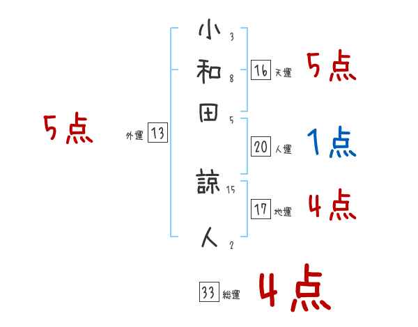 小和田諒人さんの画数の鑑定結果