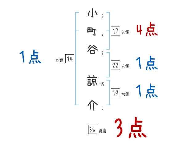 小町谷諒介さんの画数の鑑定結果