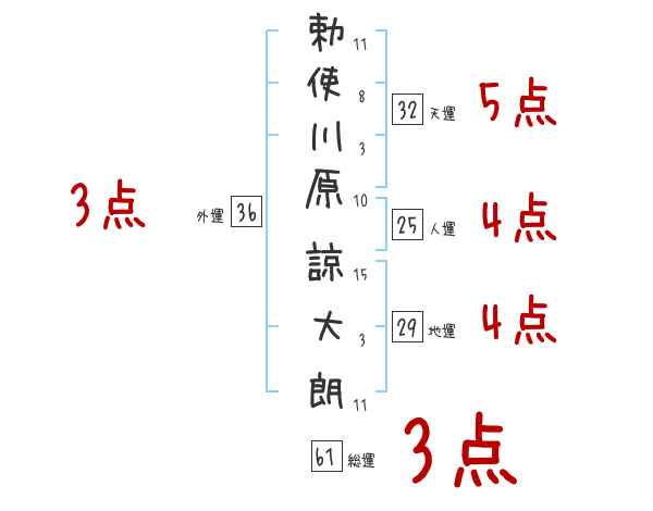 他にも占いサイトは数多くありますが、占い師や流派によって、字画の数え方運勢の吉凶が異なり、当サイトで運勢が良くなくても、他のサイトで良い運勢が出ることがあります。