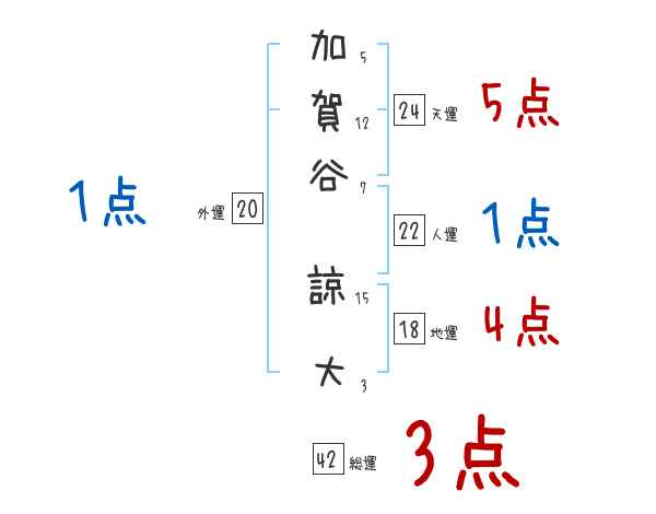 加賀谷諒大さんの画数の鑑定結果