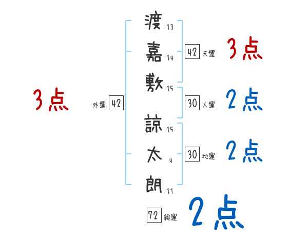 渡嘉敷諒太朗さんの画数の鑑定結果