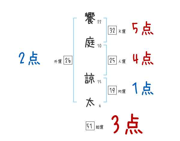 饗庭諒太さんの画数の鑑定結果