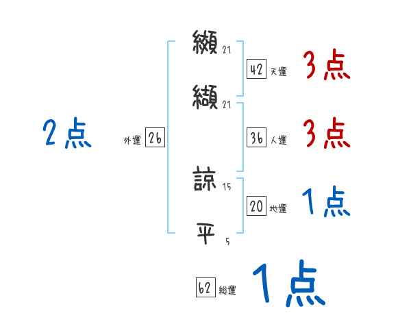 纐纈諒平さんの画数の鑑定結果