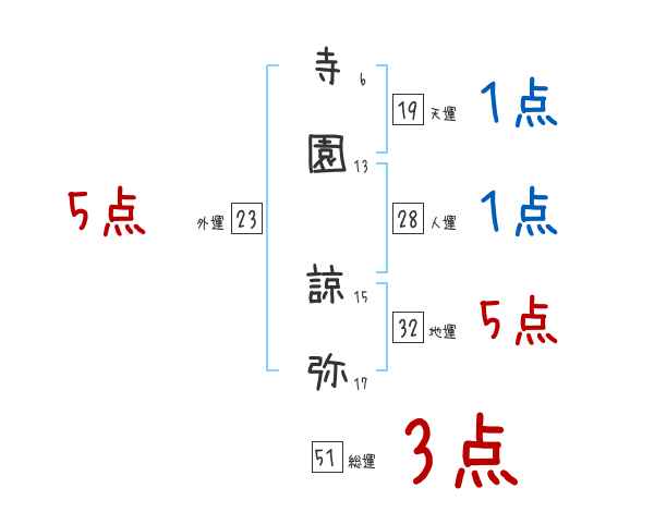 寺園諒弥さんの画数の鑑定結果