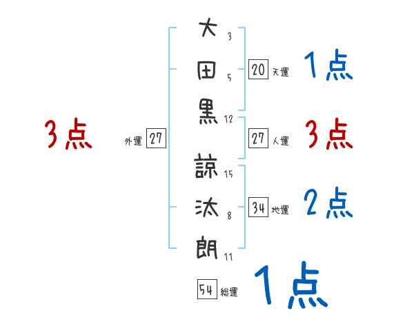 大田黒諒汰朗さんの画数の鑑定結果