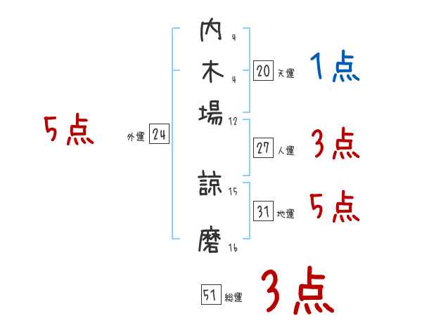 総運![]() | 内木場諒磨さんの総運は51画の3つ星!変化が激しく、危険に注意。堅実な性格。 あなたの人生を表す1番重要な運勢です。生涯を通じて影響する総合運となり、主に50歳以降の晩年期に影響を及ぼします。 |