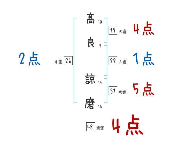 髙良諒磨さんの画数の鑑定結果