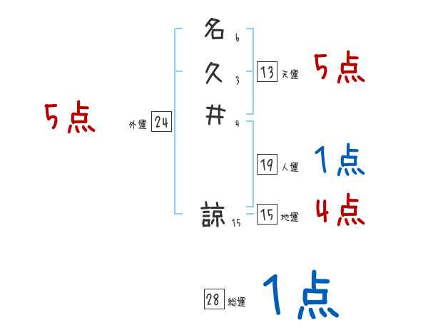 総運![]() | 名久井諒さんの総運は28画の1つ星!家庭環境に注意。スポーツで活躍できる能力があるかも。 あなたの人生を表す1番重要な運勢です。生涯を通じて影響する総合運となり、主に50歳以降の晩年期に影響を及ぼします。 |