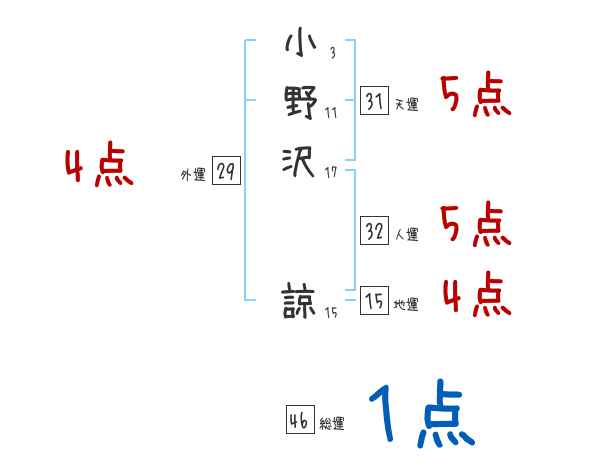 小野沢諒さんの画数の鑑定結果