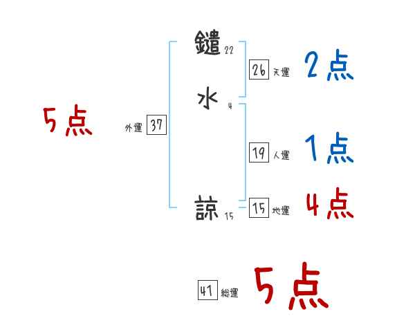鑓水諒さんの画数の鑑定結果