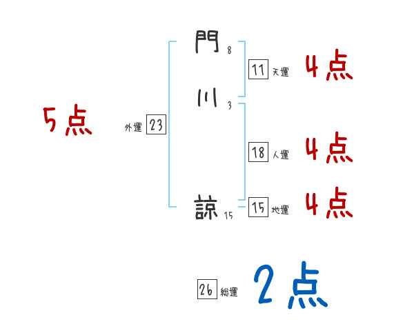 天運![]() | 門川諒さんの天運は11画の4つ星!着実に富や地位を得る幸運な人生。 家系が持つ宿命的な運勢を表します。祖先から受け継いだ苗字ですので自分の力が及びません。家柄を象徴します。 |
