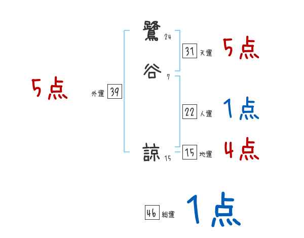 鷺谷諒さんの画数の鑑定結果
