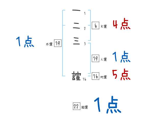 総運![]() | 一二三諠さんの総運は22画の1つ星!努力することが苦手ないっぽう手先が器用。芸術性にも優れる。 あなたの人生を表す1番重要な運勢です。生涯を通じて影響する総合運となり、主に50歳以降の晩年期に影響を及ぼします。 |