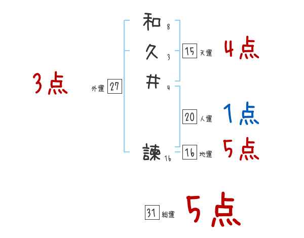 和久井諫さんの画数の鑑定結果