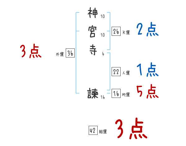 家系が持つ宿命的な運勢を表します。祖先から受け継いだ苗字ですので自分の力が及びません。家柄を象徴します。