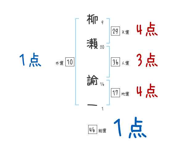 柳瀬諭一さんの画数の鑑定結果
