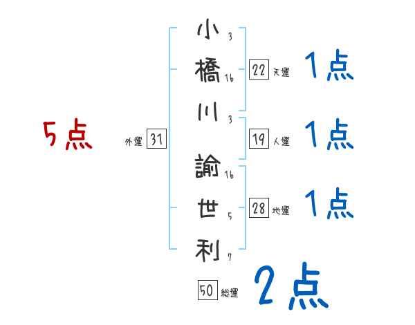 小橋川諭世利さんの画数の鑑定結果