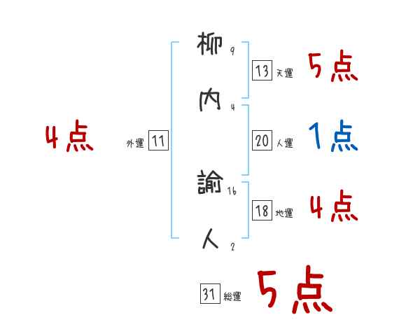 柳内諭人さんの画数の鑑定結果