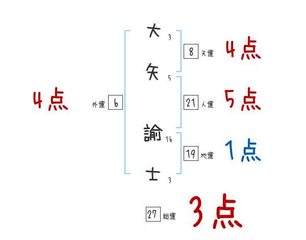 天運![]() | 大矢諭士さんの天運は8画の4つ星!勤勉家。根気強く努力し成功する。忍耐力がある。 家系が持つ宿命的な運勢を表します。祖先から受け継いだ苗字ですので自分の力が及びません。家柄を象徴します。 |