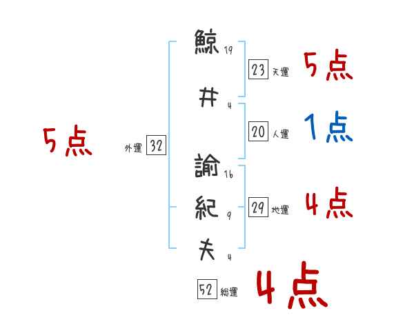 鯨井諭紀夫さんの画数の鑑定結果