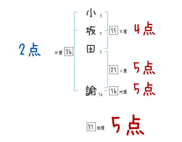 小坂田諭さんの画数の鑑定結果
