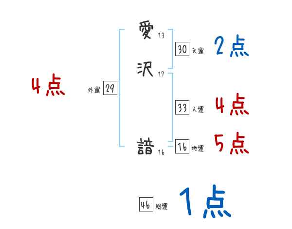 愛沢諳さんの画数の鑑定結果