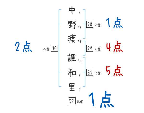 天運![]() | 中野渡諷和里さんの天運は28画の1つ星!家庭環境に注意。スポーツで活躍できる能力があるかも。 家系が持つ宿命的な運勢を表します。祖先から受け継いだ苗字ですので自分の力が及びません。家柄を象徴します。 |