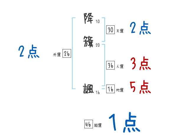天運![]() | 降籏諷さんの天運は30画の2つ星!浮き沈みの激しさに注意しましょう。 家系が持つ宿命的な運勢を表します。祖先から受け継いだ苗字ですので自分の力が及びません。家柄を象徴します。 |