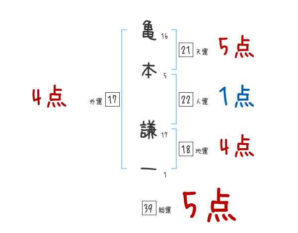 亀本謙一さんの画数の鑑定結果