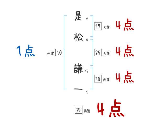 是松謙一さんの画数の鑑定結果