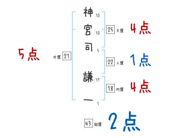 神宮司謙一さんの画数の鑑定結果