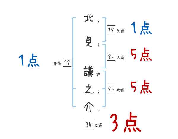 北見謙之介さんの画数の鑑定結果