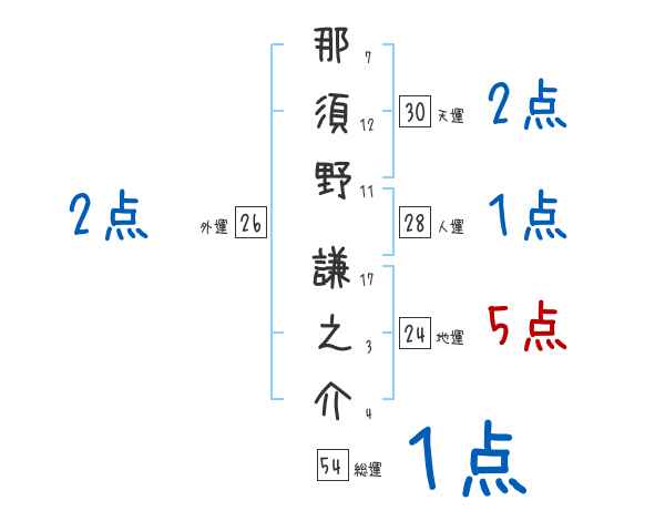 那須野謙之介さんの画数の鑑定結果