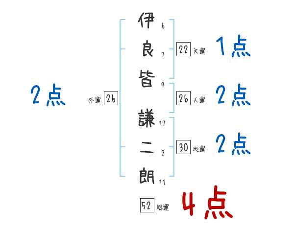 伊良皆謙二朗さんの画数の鑑定結果