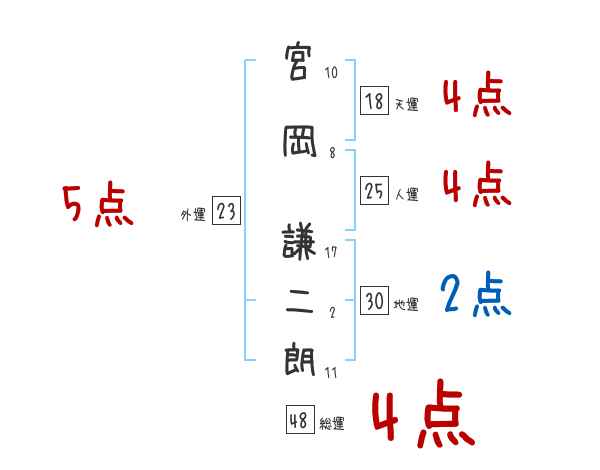 宮岡謙二朗さんの画数の鑑定結果