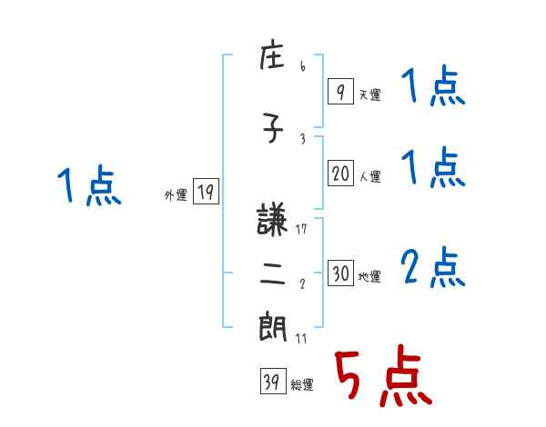 庄子謙二朗さんの画数の鑑定結果