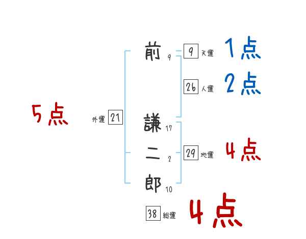 前謙二郎さんの画数の鑑定結果