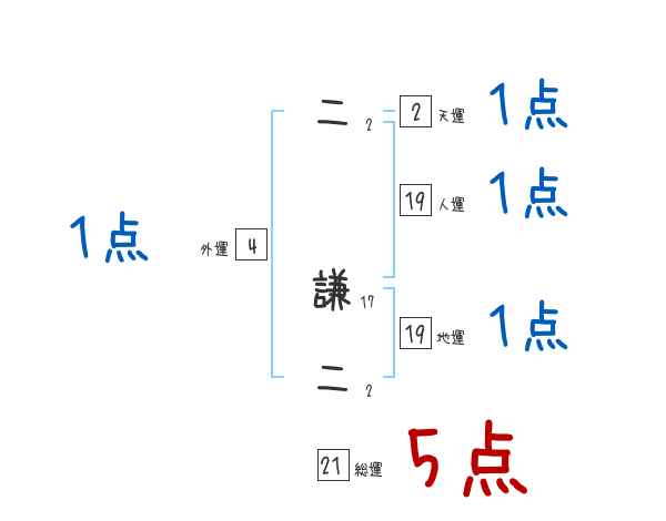二謙二さんの画数の鑑定結果
