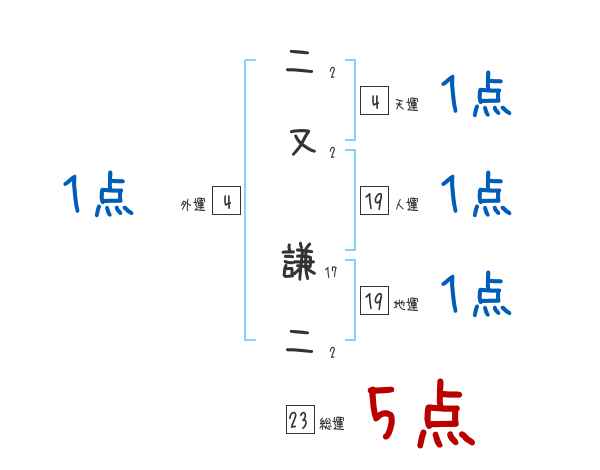 二又謙二さんの画数の鑑定結果