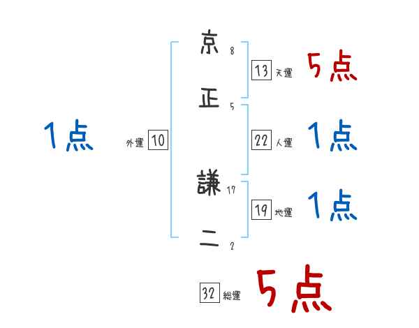京正謙二さんの画数の鑑定結果