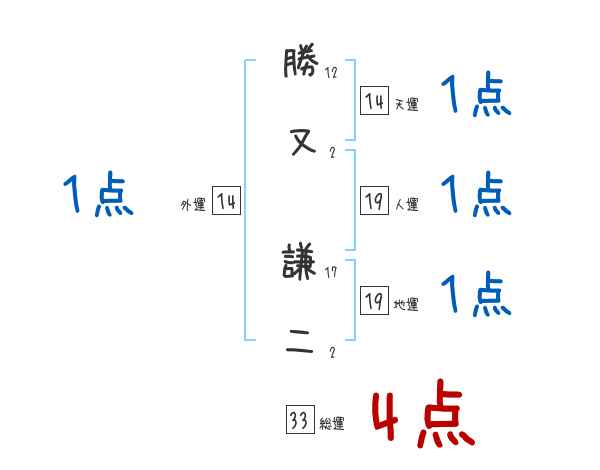 勝又謙二さんの画数の鑑定結果