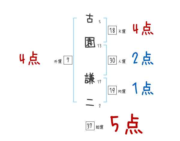 古園謙二さんの画数の鑑定結果