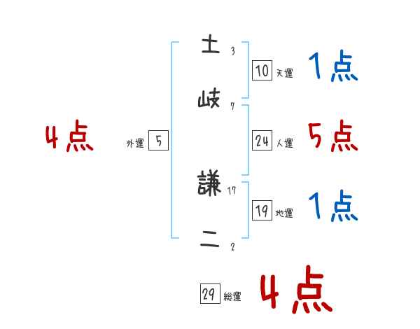 土岐謙二さんの画数の鑑定結果