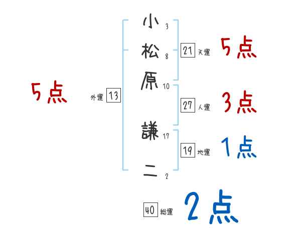 小松原謙二さんの画数の鑑定結果