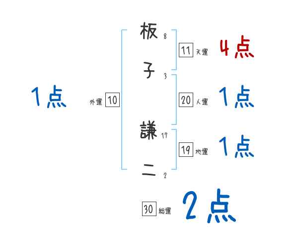 板子謙二さんの画数の鑑定結果