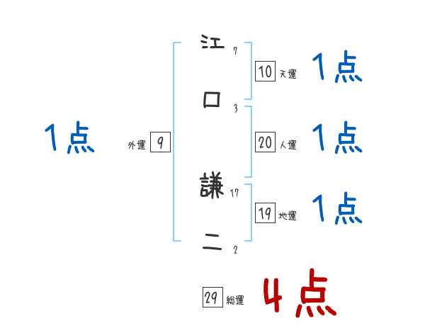 江口謙二さんの画数の鑑定結果